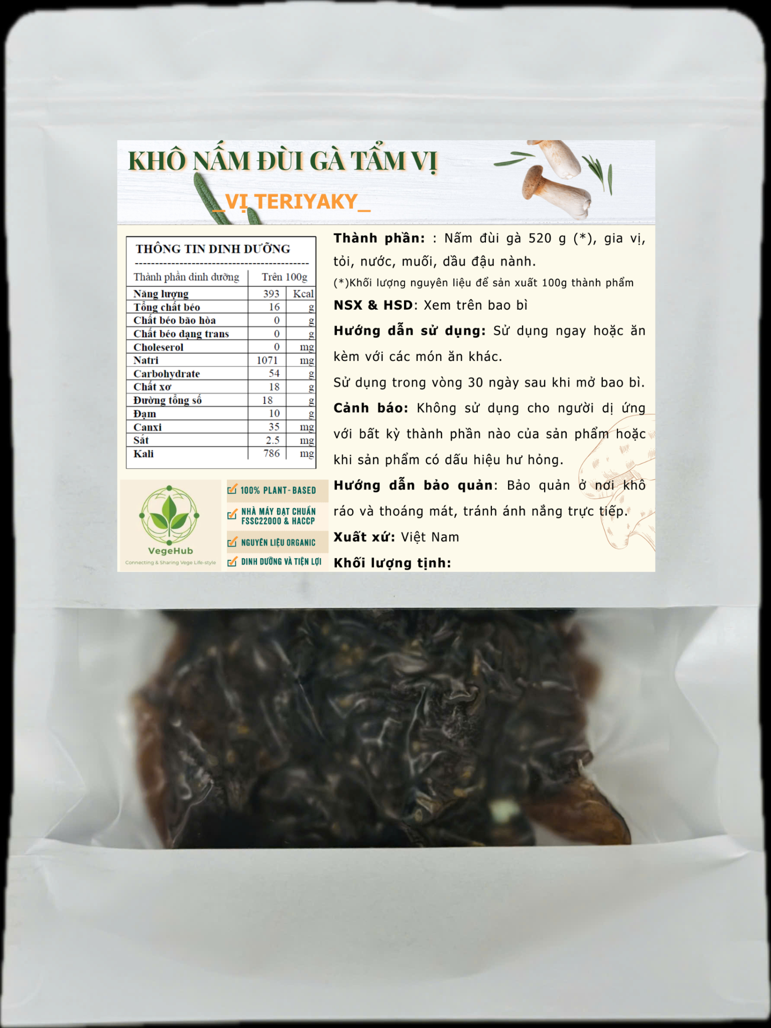 ⭐️THÀNH PHẦN : Nấm đùi gà hữu cơ (80%), hỗn hợp gia vị tự nhiên.